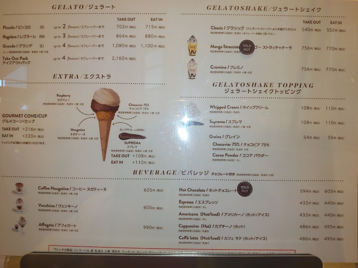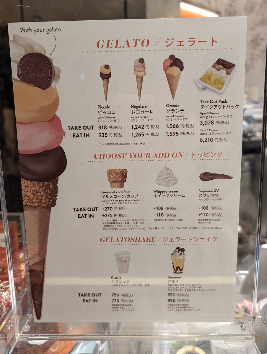 Overall, the menu at Venchi Otemachi One Store delivers a refined yet approachable Italian café experience, balancing indulgence and simplicity with impressive consistency. Signature items like the rich and satisfying ヴェンキーノ highlight the brand’s chocolate expertise, while the smooth and well-balanced アメリカーノ provides a dependable companion for both quick breaks and relaxed visits. What truly stands out, however, is the gelato selection-particularly the luxurious ダークチョコレートとティラミスのジェラート, which captures deep cocoa intensity layered with creamy, dessert-like elegance. The menu feels thoughtfully curated rather than overwhelming, allowing each item to shine without excess, and making it an ideal stop for those seeking high-quality sweets and beverages in a polished Tokyo setting.